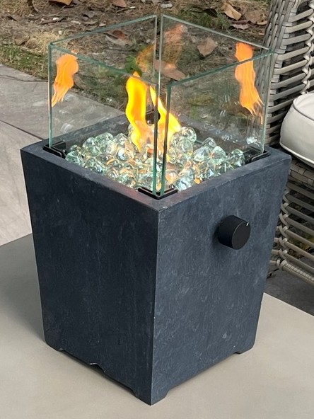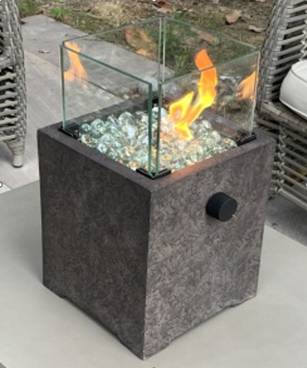 Luxusní a funkční ohřívač jako stolní krb na plyn - FURDO (44x25x25cm). Stolní ohniště bez kouře a zápachu, sálavý ohřívač během chladných dnů či jako romantické posezení v zahradě. Stolní krby ohniska na Váš stůl v zahradě, na terasu, balkoně, atd . . Tento plynový krbový stolní krb je dokonalým společníkem pro venkovní sezení tím, že dodává teplo a romantickou atmosféru kolem vašeho stolu. Vnější část krbu je vyrobena z prvotřídního betonového materiálu, který je odolný vůči povětrnostním vlivům.